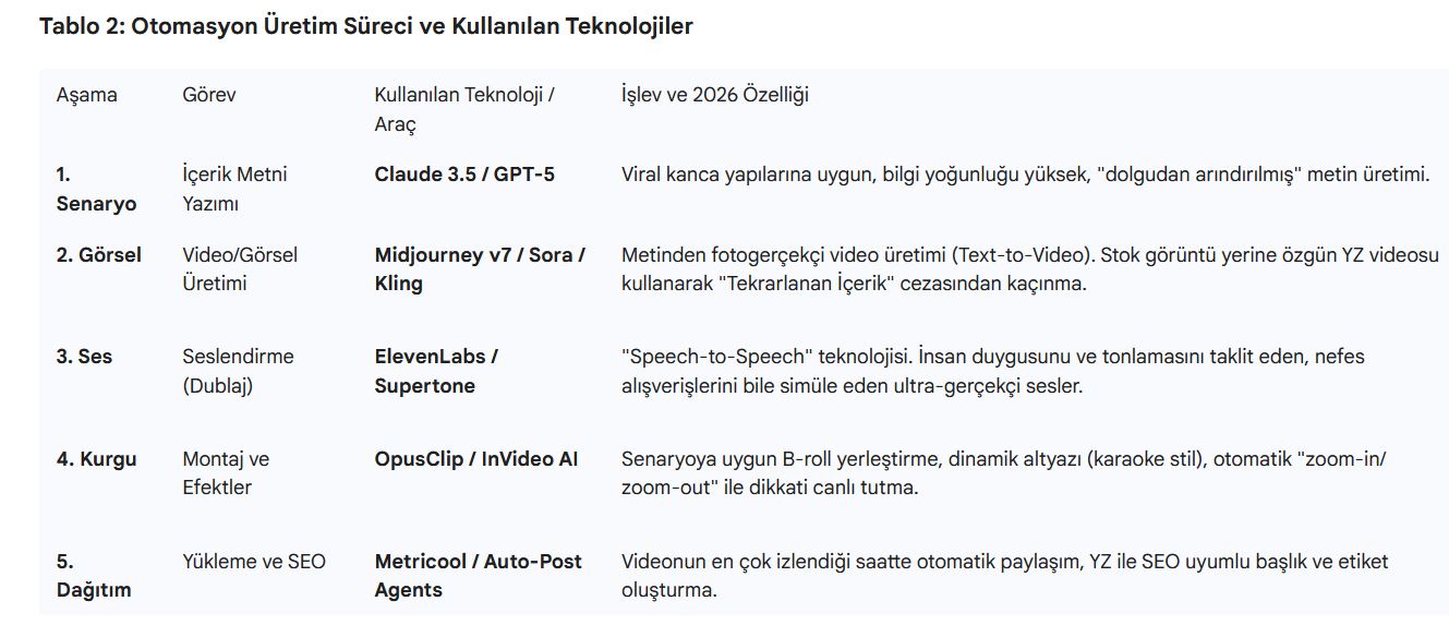 2026 standartlarında bir "Yüzsüz" kanalın üretim süreci, insan müdahalesini minimize eden, entegre bir teknoloji yığınıyla yönetilir.